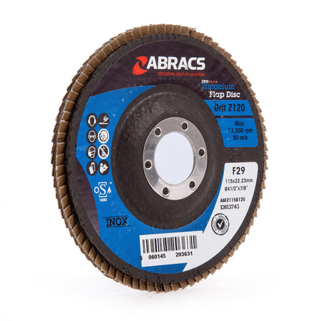 Abracs ABFZ115B0120 Pro Zirconium Flap Disc 115mm 120 Grit (5 Pack)