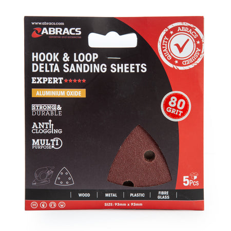 Abracs ABHLT9393080 Hook & Loop Delta Sanding Sheets 80 Grit 93mm (5 Pack)