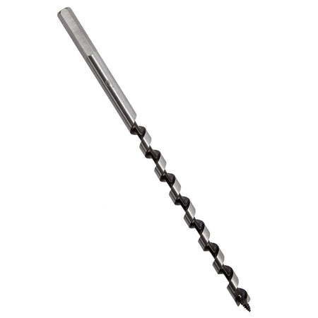 The Abracs AWDB100230 Auger Drill Bit has a 10mm diameter, a working length of 150mm, an overall length of 230mm and a hex shank. Abracs Auger Drill Bits are spiral-shaped, designed to produce clean, deep holes in wood material applications. Sharp spurs at the tip guide the bit into the wood ensuring a smooth and uniform hole throughout. Manufactured with high grade carbon steel and a centre point with screw resulting in less downward pressure being required for them to bite into the work piece. The wide deep flighting of these bits allows efficient removal of wood shavings and prevents the hole from becoming clogged. Supplied in a plastic tube.