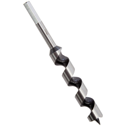 The Abracs AWDB250230 Auger Drill Bit has a 25mm diameter, a working length of 140mm, an overall length of 230mm and a hex shank. Abracs Auger Drill Bits are spiral-shaped, designed to produce clean, deep holes in wood material applications. Sharp spurs at the tip guide the bit into the wood ensuring a smooth and uniform hole throughout. Manufactured with high grade carbon steel and a centre point with screw resulting in less downward pressure being required for them to bite into the work piece. The wide deep flighting of these bits allows efficient removal of wood shavings and prevents the hole from becoming clogged. Supplied in a plastic tube.