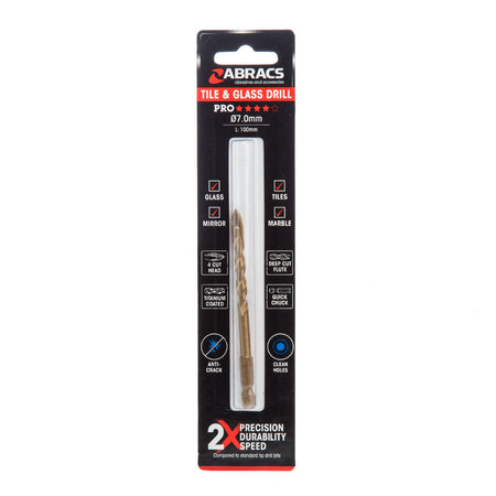 The Abracs DBG070 7mm Drill bit for tile and glass has a 4 tip head for precise, accurate drilling on first contact. The carbide tip also provides precise, non-slip drilling.