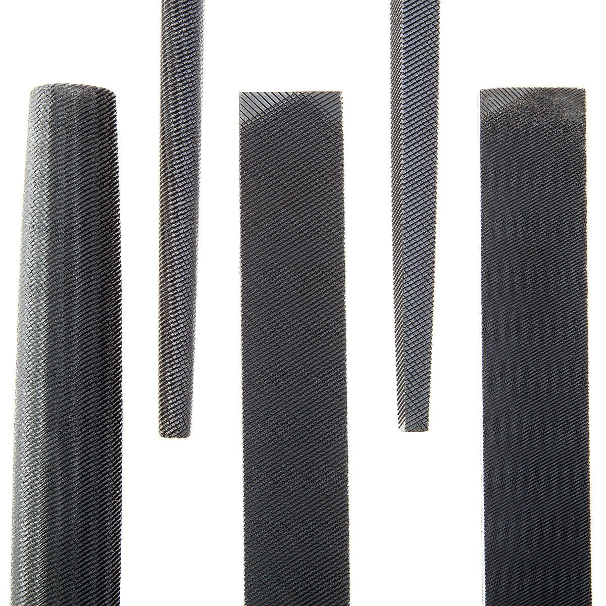 The Bahco 14780812 5 Piece Assorted Engineers File Set, for filing flat surfaces, sharp corners and shoulders