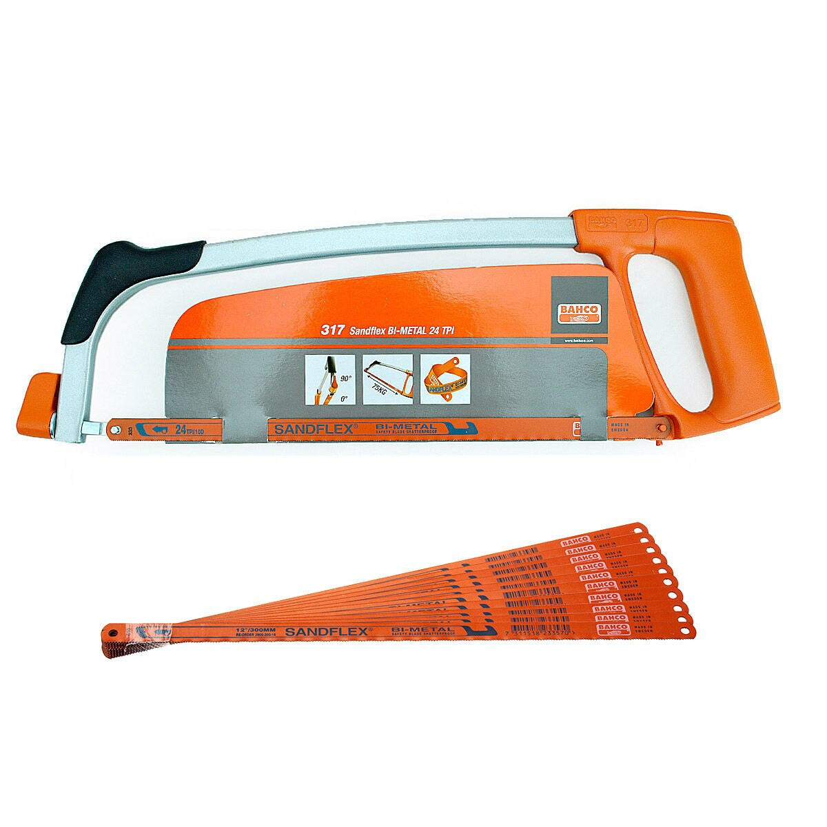 Bahco 317 12 Inch Sandflex Hacksaw Frame complete with 1 x 24TPI Blade and 10 x 24TPI Blades