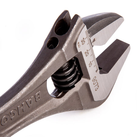 The Bahco 9073 Adjustable Wrench gives the user maximum comfort with minimum effort due to the ergonomic design. Achieving extra comfort and a better grip with the lightweight, slip free handle and improved access in confined spaces with the slim 15° angled jaws. Ultimate strength through precision hardening and high performance alloy steel