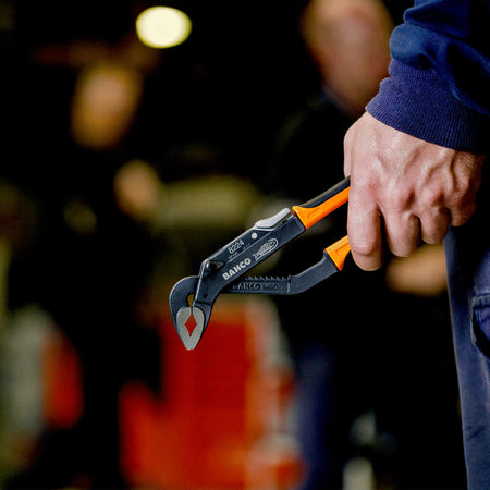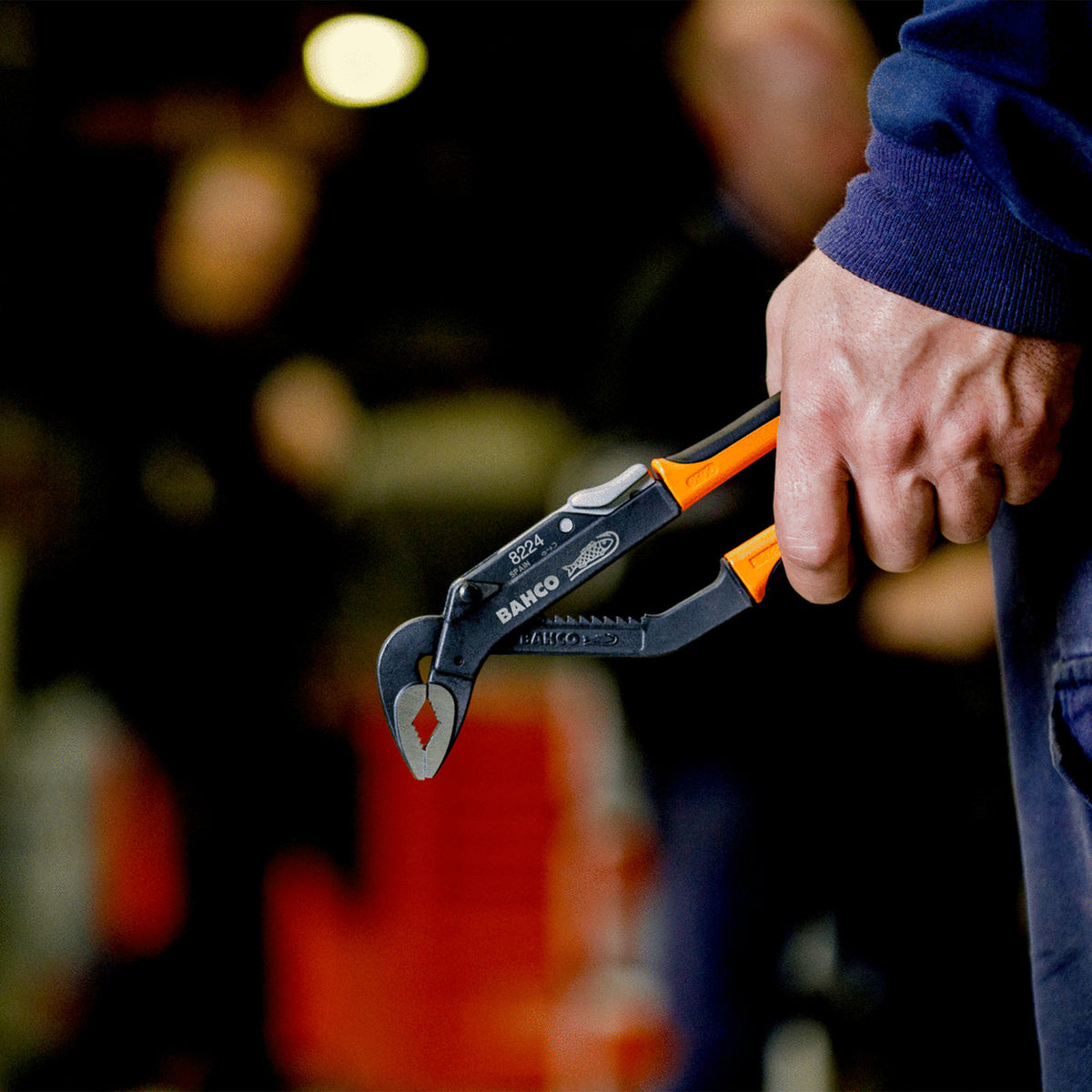 The Bahco 9873 Plumbers Set contains the 8224 water pump slip joint pliers and 9072P adjustable wrench. The 9072P wrench features the same spec as the original 9072, only now with a larger 33mm jaw capacity and 8224 pliers have a single thumb button adjustment which allows you to easily change between sizes.