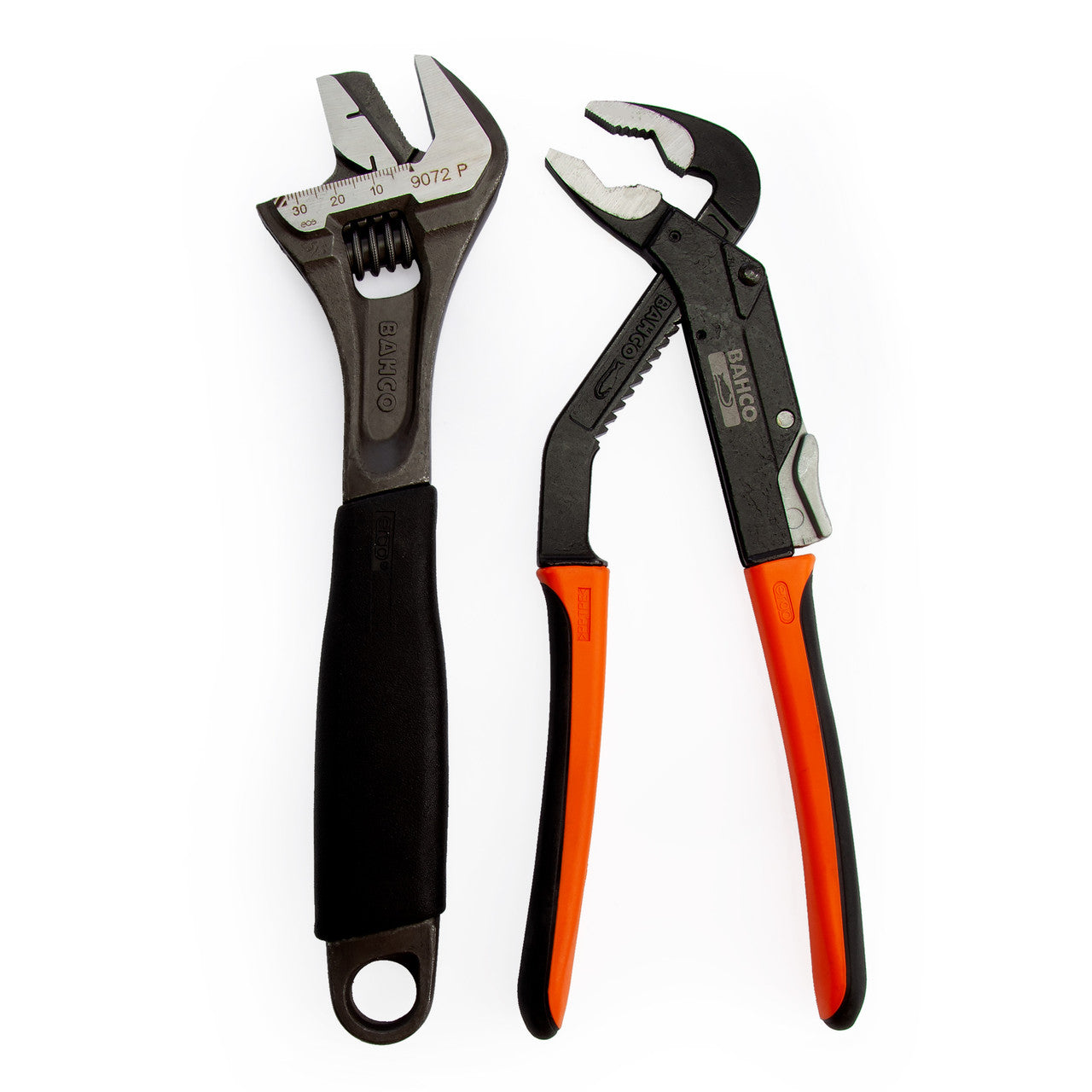 Bahco 9873 Adjustable Wrench and Slip Joint Pliers Plumbers Set - 9072P & 8224