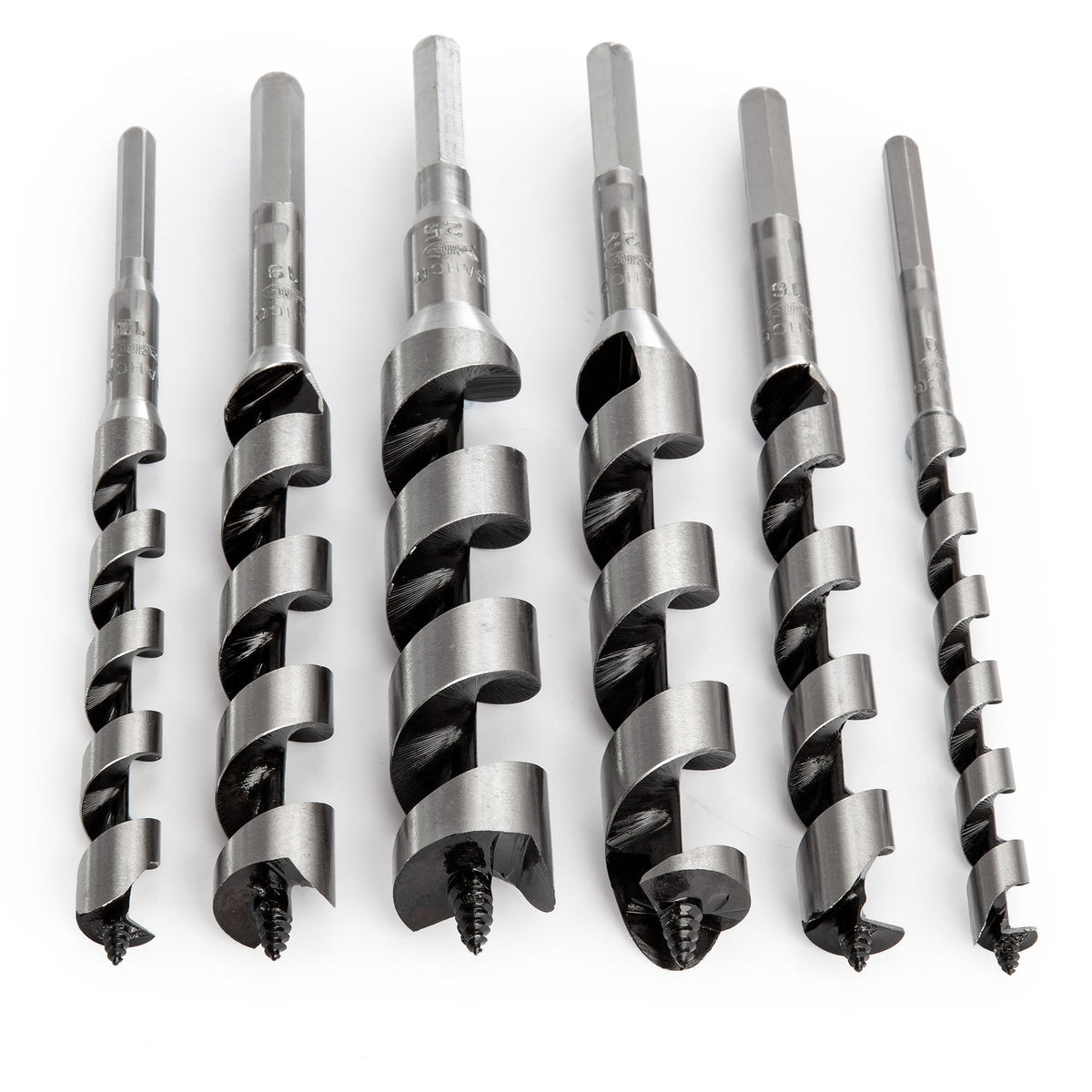 For quick precision cutting with all types of wood in sizes 10, 13, 16, 19, 22 and 25 mm. These Auger Bits are equally suited to hand braces or power drills.