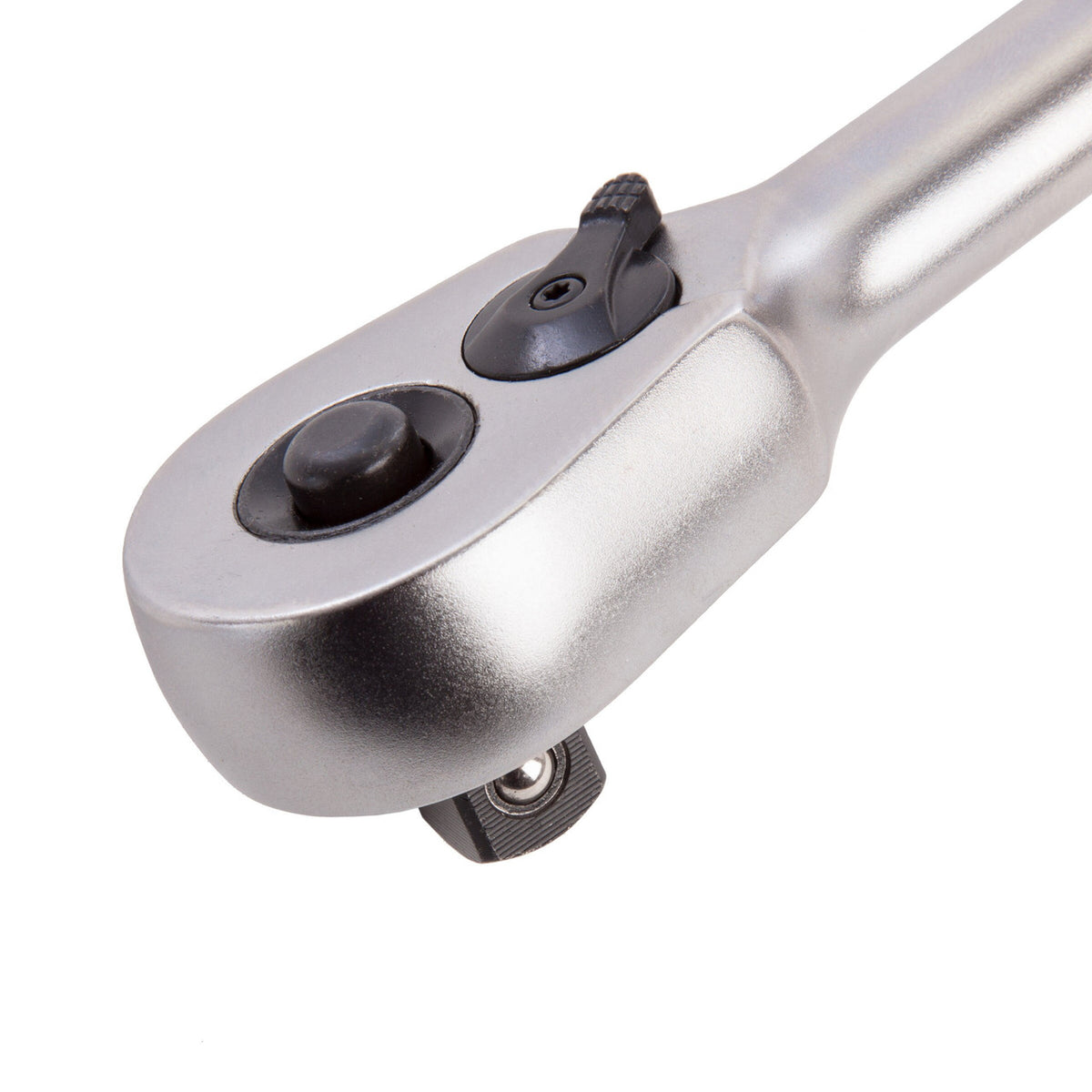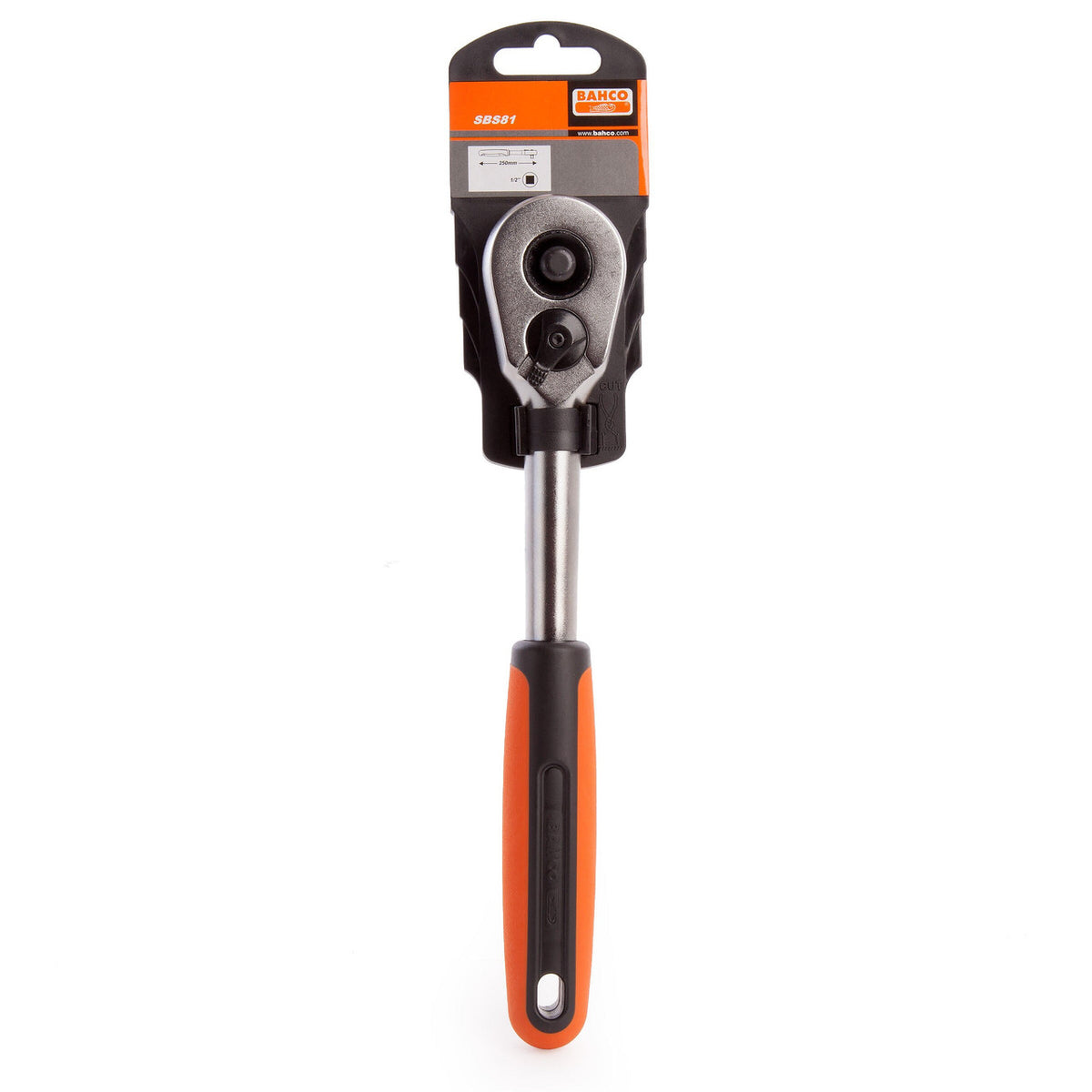 The Bahco SBS81 has a reassuringly heavy feel with a quality ratchet which is both quick release and reversible. The thick chrome-plated finish will inhibit corrosion. The comfortable 2 component handle giving an excellent grip and a quick socket release button makes changes between different sizes of sockets easy.