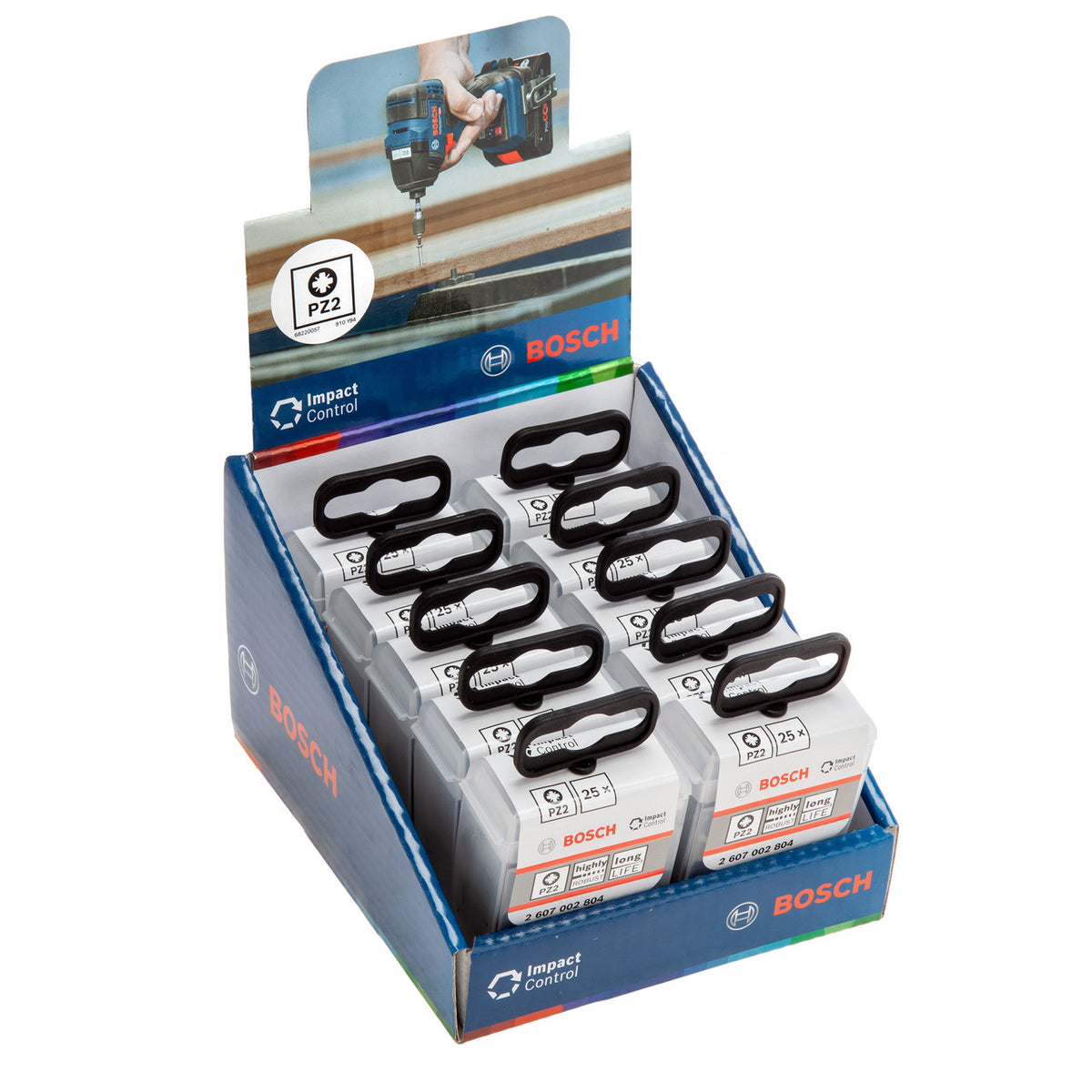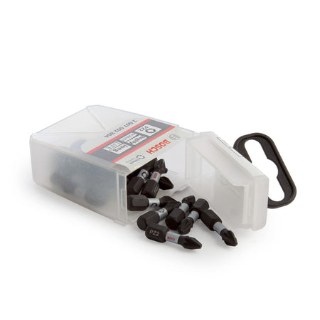 The Bosch 2607002804 is a pack of 25 impact control PZ2 bits stored in a handy tic tac box for ease of storage and bit identification. They are highly robust and can even withstand the power of impact drivers, with an extended torsion zone for sturdy, long-lasting work.