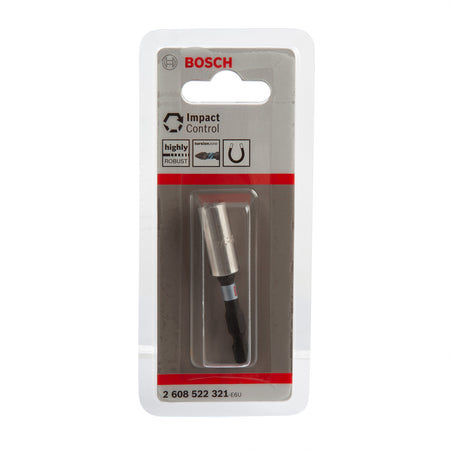 The Bosch 2608522321 is a highly robust impact control universal bit holder that is 60mm in length. It has a permanent magnet to secure the bit for optimum working and an extended torsion zone for extremely sturdy, long-lasting work.