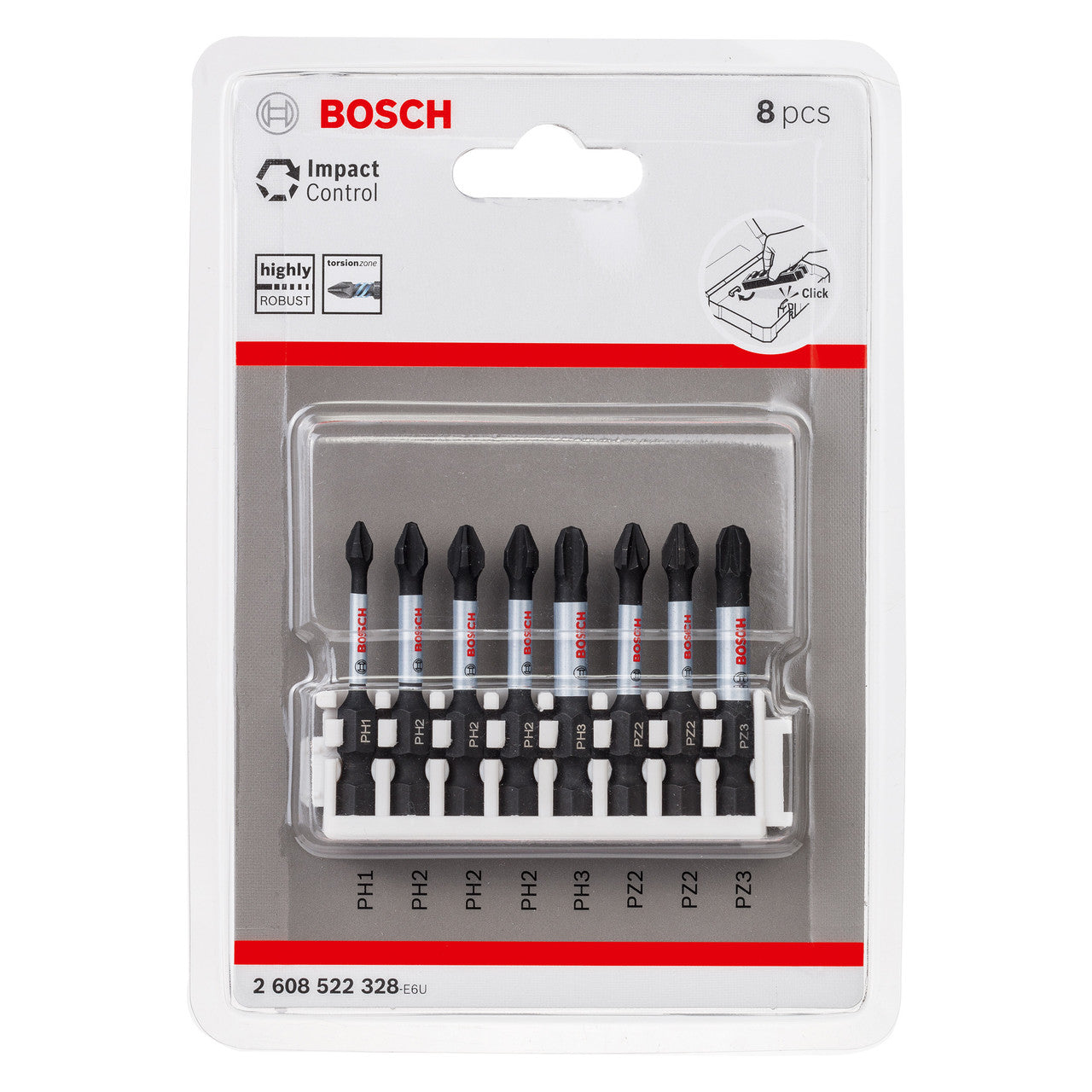 - The bits come in a convenient plastic holder that seamlessly integrates with Bosch Pick and Click Empty Cases (M and L sizes) for organised and protected storage