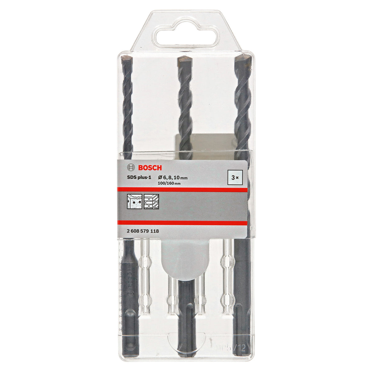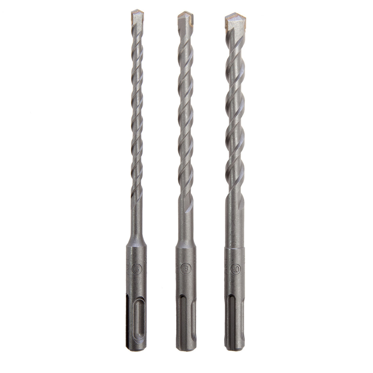 The Bosch 2608579118 Pack of 3 Drill Bits are in sizes 6mm, 8mm and 10mm with a 100mm working depth and 160mm overall length. Designed for use with SDS Plus Rotary Hammer Drills drilling in Concrete, Lime and Sand Brick, Solid Brick, Concrete Building Block and Hard Stone.