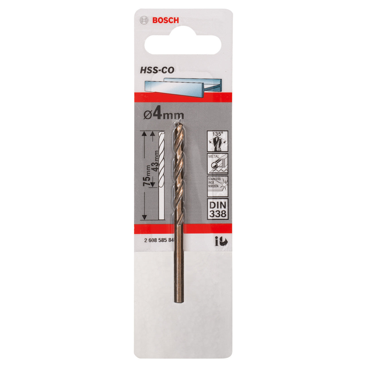 Bosch 2608585846 HSS-Co Metal Drill Bit 4mm x 43mm x 75mm (Single)