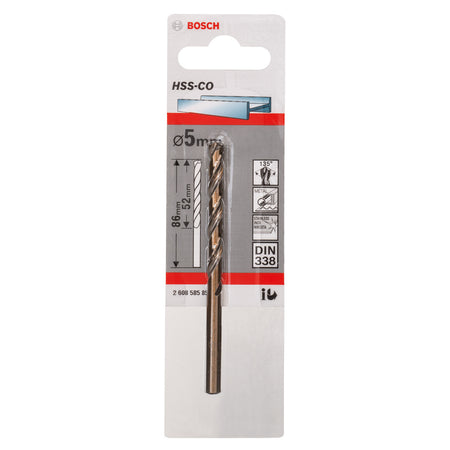 Bosch 2608585851 HSS-Co Metal Drill Bit 5mm x 52mm x 86mm (Single)