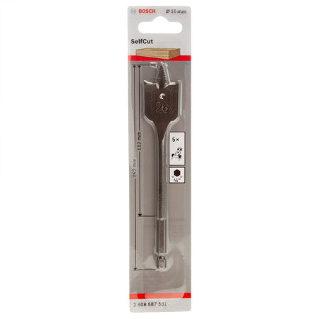 Bosch 2608587581 SelfCut Flat Drill Bit with Hex Shank 26 x 152mm