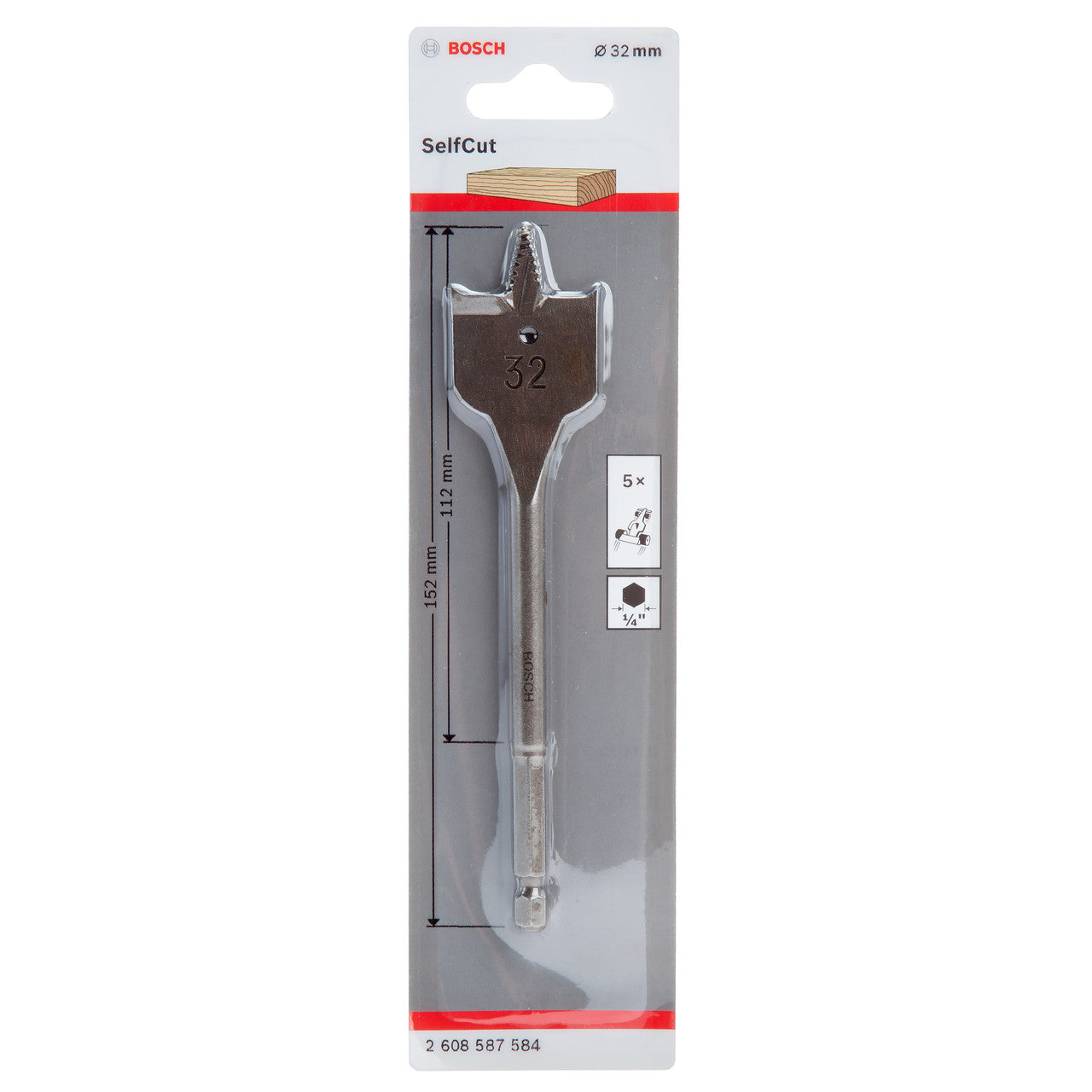 Bosch 2608587584 SelfCut Flat Drill Bit with Hex Shank 32mm x 152mm
