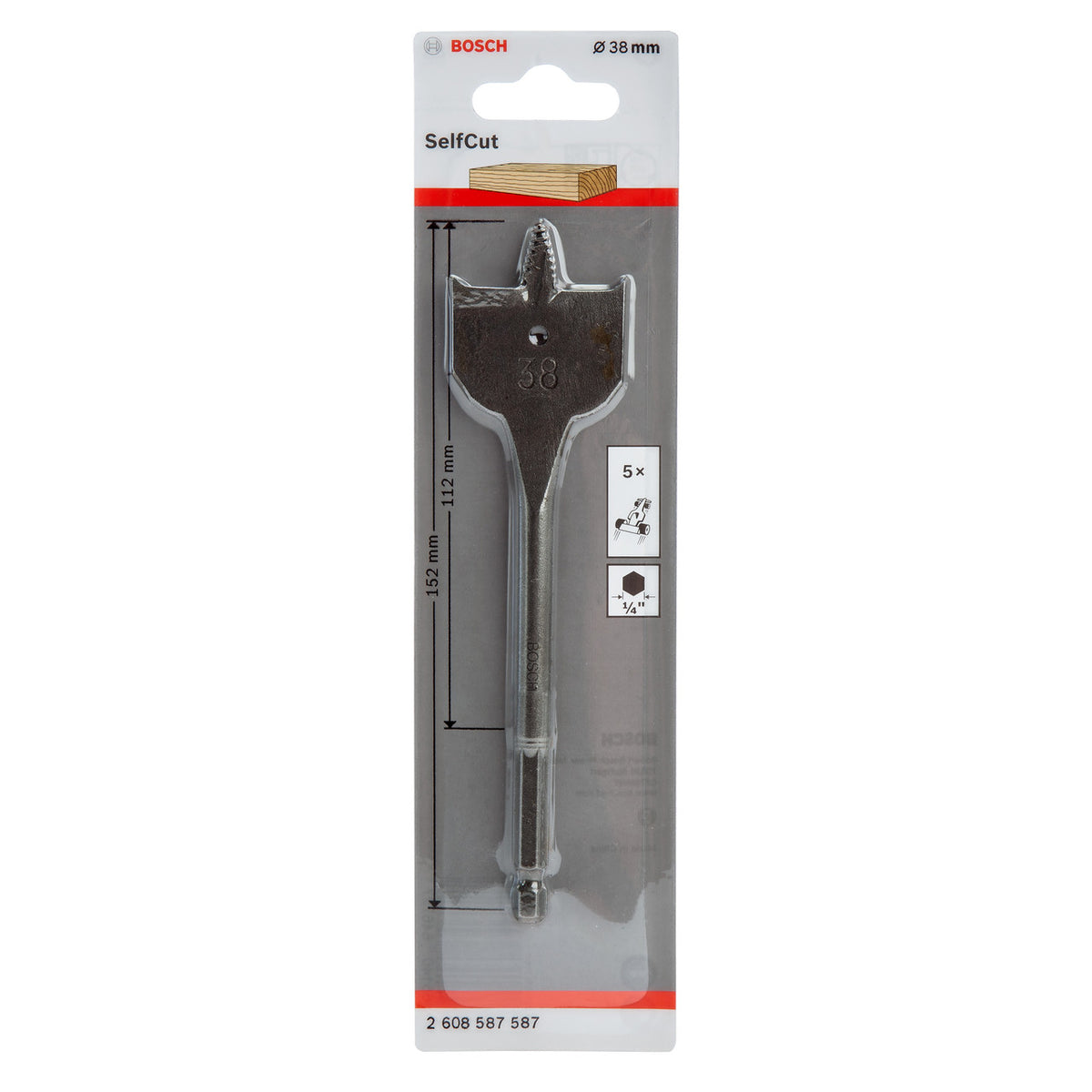 Bosch 2608587587 SelfCut Flat Drill Bit with Hex Shank 38mm x 152mm