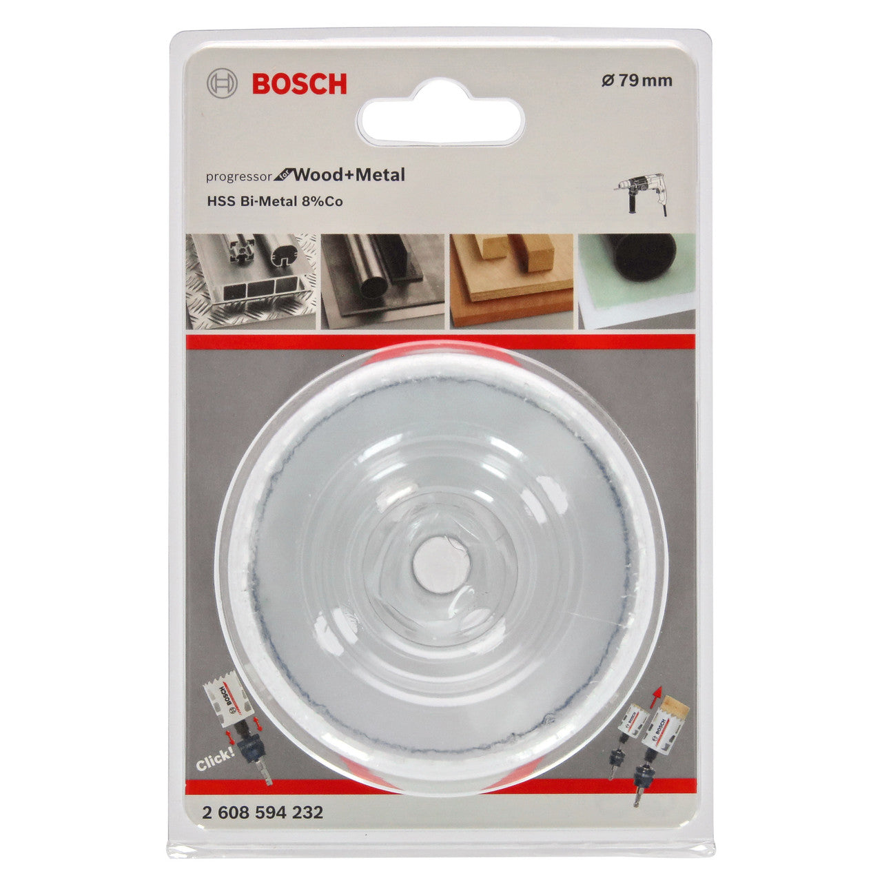 The Bosch 2608594232 HSS-Bi-Metal Holesaw has a diameter of 79mm and a working length of 44mm. BiM Progressor Hole Saw offers 2x longer lifetime than its predecessor. It has been redesigned with Bosch Bi-Metal with 8% cobalt alloy for increased durability. Additionally, it has an enhanced progressive tooth strip that enables faster cuts. Use this hole saw when drilling holes in wood, drywall, plastics, metal, non-ferrous metal and stainless steel. It is suitable for use with all corded and cordless drill drivers.