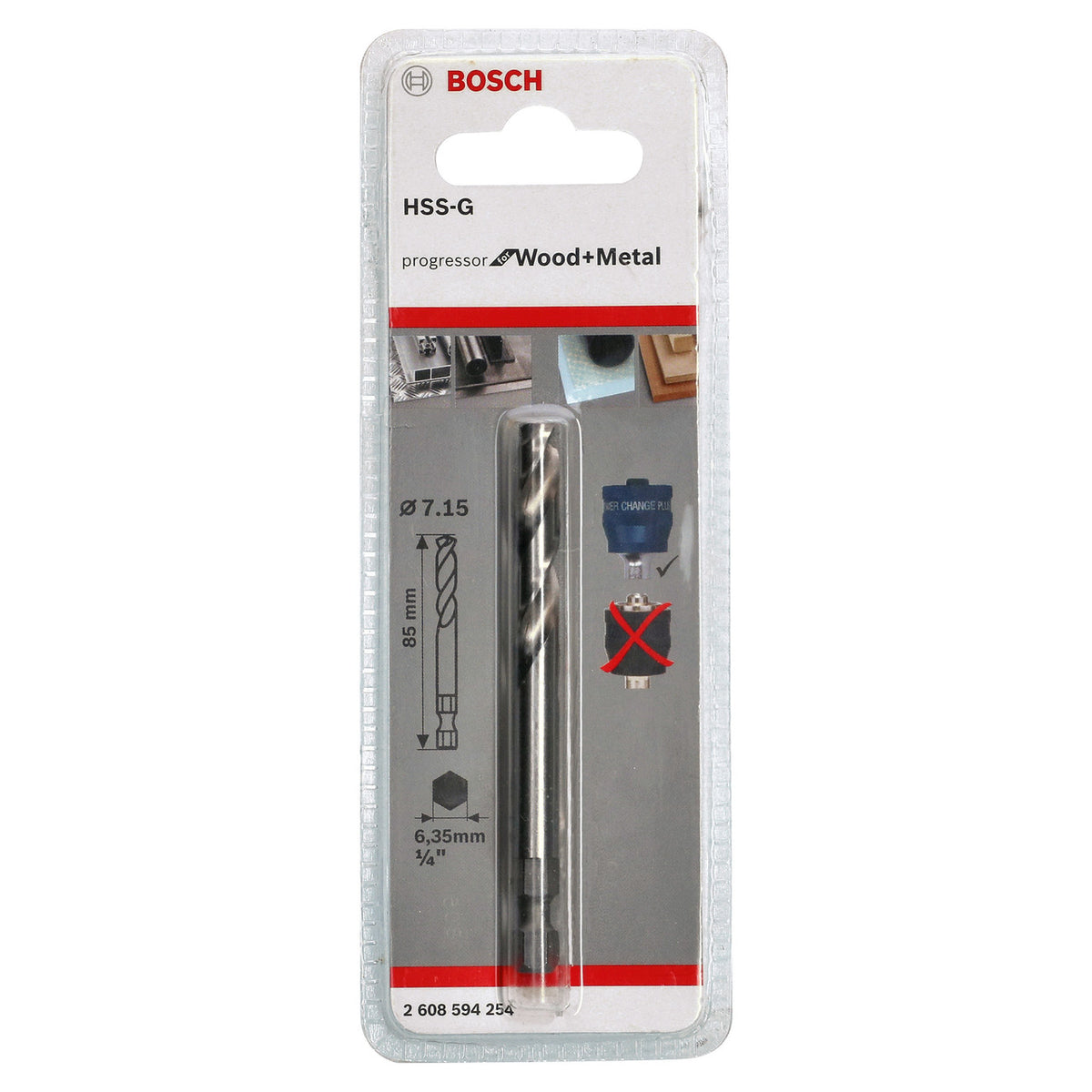 Bosch 2608594254 HSS-G Hole Saw Pilot Drill 7.15mm x 43mm x 85mm 1/4in Hex Shank