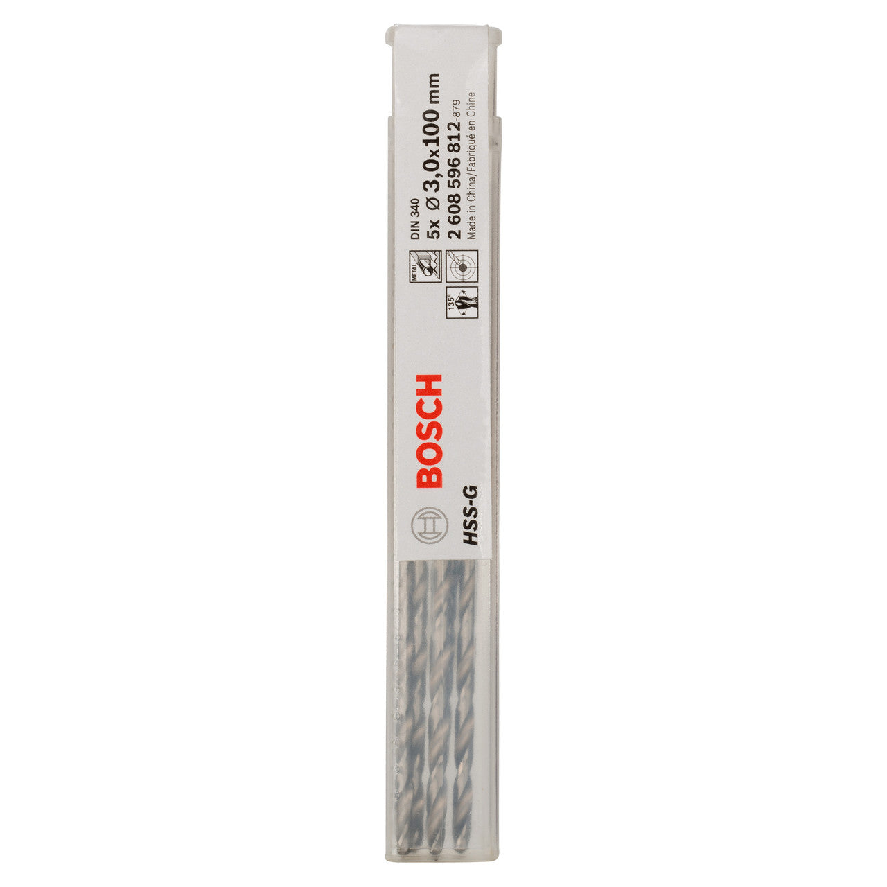 Bosch 2608596812 HSS-G Metal Drill Bits Long Series 3mm (Pack Of 5)