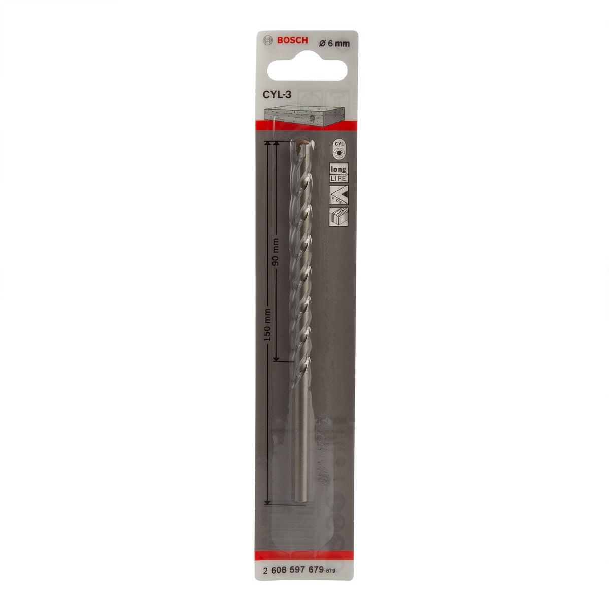 Bosch 2608597679 CYL-3 Silver Percussion Masonry Drill Bit 6 x 90 x 150mm