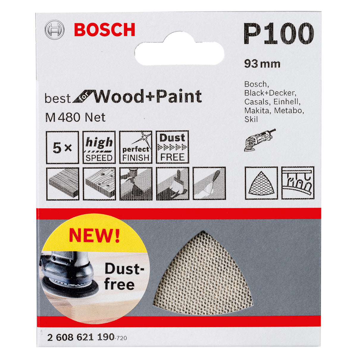 Bosch 2608621190 Sanding Delta Net Sheets M480 Best for Wood and Paint 93mm 100 Grit (Pack Of 5)