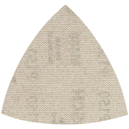 The Bosch 2608621192 is a Pack of 5 Delta shaped Net Sanding Sheets measuring 93mm in diameter. They have a P150 Grit rating and are designed for Delta Sanders, Multi-Cutters and Multi Sanders. The M480 Net Best for Wood and Paint ensures virtually dust-free sanding and keying on wood as well as painted surfaces. Its open net structure enables full-surface extraction of the sanding dust while working, encouraging minimal clogging for clean surface results without material dust buildup. The M480 Net Best for Wood and Paint is made from knitted fabric net for stable work and optimal sanding. It is intended for fine sanding softwood, hardwood, lacquer, plaster as well wood containing resin or oil. Also ideal for sanding off coating and impurities, intermediate lacquer sanding and keying primers. It is suitable for use with Delta Sanders. It features an electrostatic grain distribution and fully synthetic resin for durability and wear resistance.