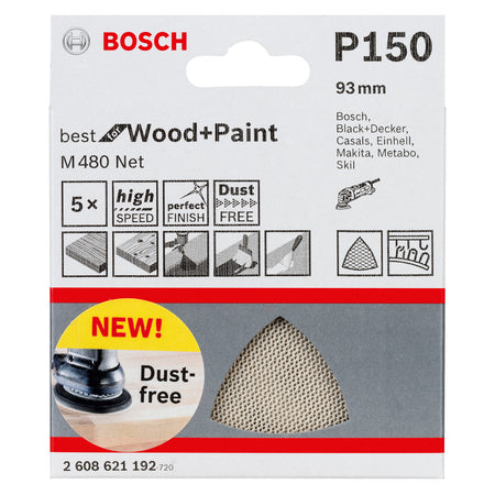 Bosch 2608621192 Sanding Delta Net Sheets M480 Best for Wood and Paint 93mm 150 Grit (Pack Of 5)