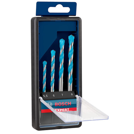 The Bosch 2608900646 Pack of 4 Expert CYL-9 MultiConstruction Drill Bits in diameters: 5.5 / 6.0 / 7.0 / 8.0mm with 1/4 inch straight shanks. This drill bit is ideal for drilling practically all materials including concrete, brick, wood, plastic and more. The modern construction site requires working on many different materials, and you never know what you will need to drill next. Finding the right drill bit can be difficult and time-consuming – unless you have the EXPERT MultiConstruction Drill Bit. The Bosch EXPERT CYL-9 MultiConstruction Cylindrical Drill Bit is the one drill bit that should always be in your toolbox: you'll never get stuck on a job or waste time looking for the right bit.