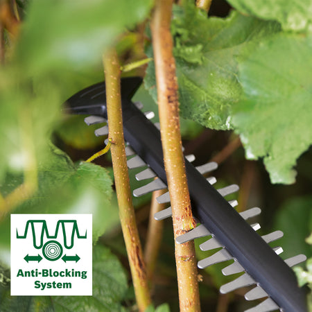 The EasyHedgeCut 45 is a 240 volt machine with a 45cm cutting length and 16mm tooth spacing for cutting larger branches. Relatively lightweight at 2.6kg it has a balanced weight with ergonomic handling for comfort in any working position The machine is fitted with a high-performance 450 Watt motor, delivering lots of power and giving excellent results. The end of the 45cm blade has a blade-tip protector for trimming along walls and paths safely. The EasyHedgeCut 45 is perfect for trimming small hedges and comes with 10 metres of cable and a blade cover.