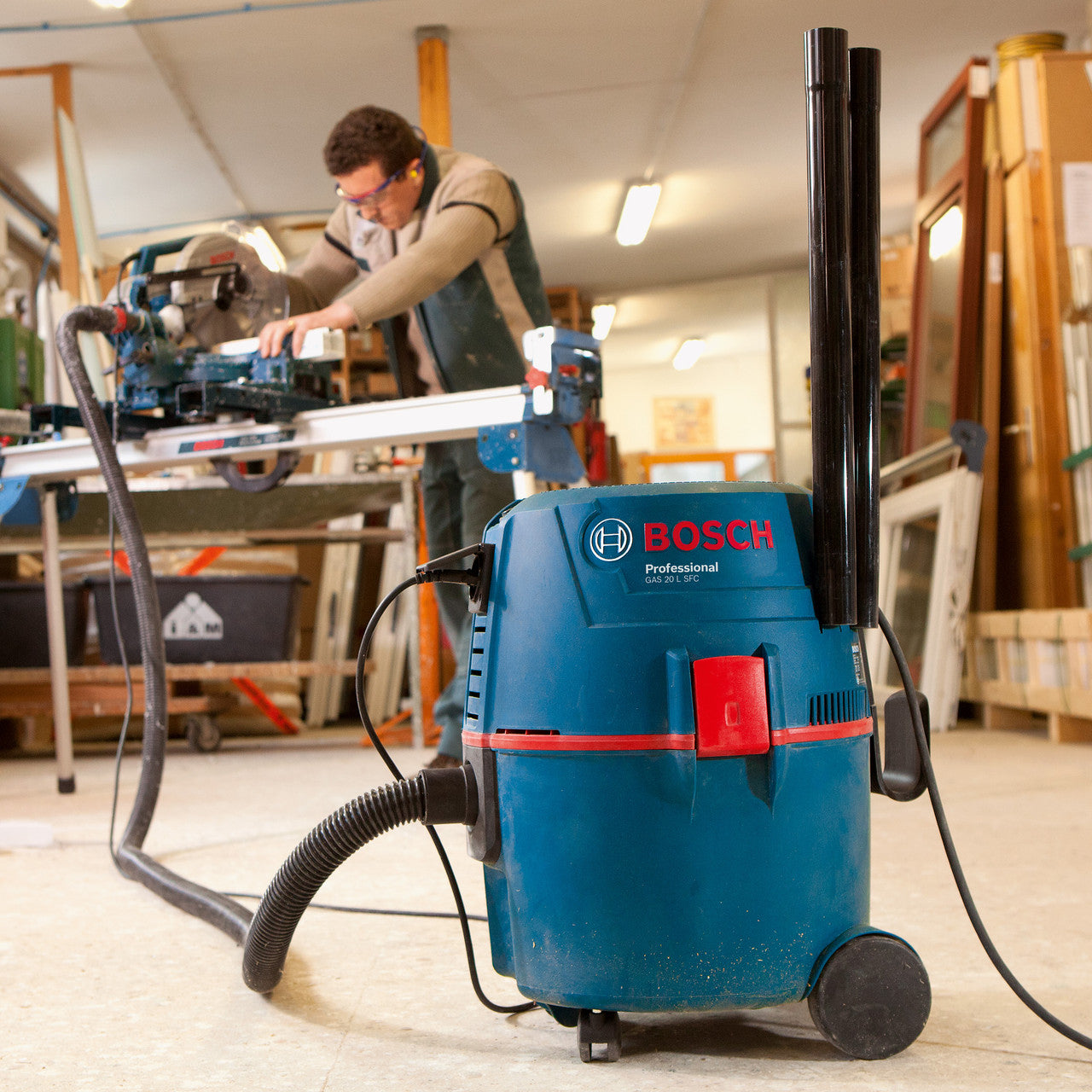 The Bosch GAS 20 L SFC is a 240V Wet & Dry Vacuum Cleaner, Dust Extractor with an L Class Rating. The machine can be used in metalworking, woodworking and construction applications. It has a powerful 1200W motor and comes with a variety of attachments listed below.