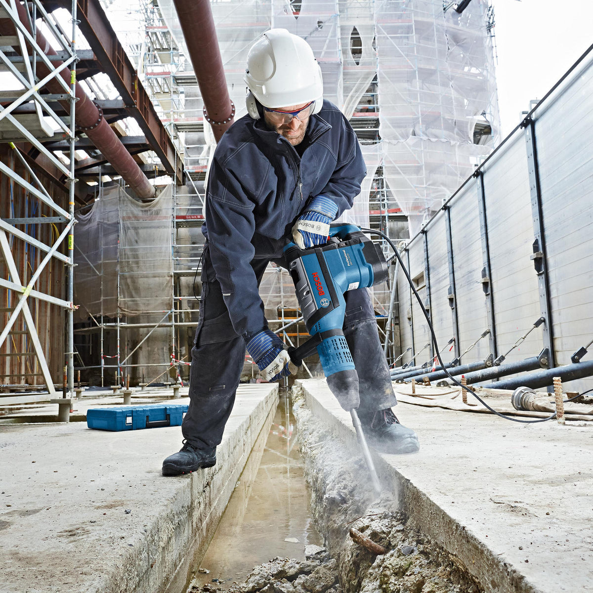 - Bosch's intelligent triple vibration damping system minimises vibration to a remarkable 8 m/s² when chiselling and 10 m/s² when drilling, significantly reducing user fatigue during extended use