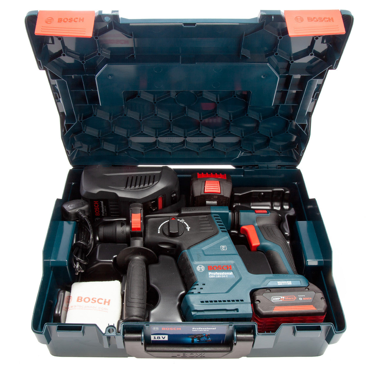The GBH 18V-24 C Professional is an all-round performer in Bosch’s SDS plus cordless rotary hammer category – perfect for daily use. It is equipped with a brushless motor and features KickBack Control and Vibration Control for increased user health protection. Its HMI display conveniently informs about the battery status and other user-relevant notifications. With a built-in Bluetooth Connectivity module to allow fast and easy connection with the Bosch Toolbox App for personal settings adjustments. It is compatible with Bosch’s self-contained GDE 18V-16 Professional dust extraction system that integrates onto the hammer with one click. The GBH 18V-24 C Professional is intended for drilling and chiseling in concrete, and masonry and is compatible with all batteries and chargers in the Bosch Professional 18V System. It also includes Constant Speed, Electronic Motor Protection (EMP), LED light, Rotation Control Clutch, Variable Speed, and Vario Lock. This model comes with 2 x 5.0Ah Batteries, Charger, Side Handle, Depth Stop and an L-Boxx.