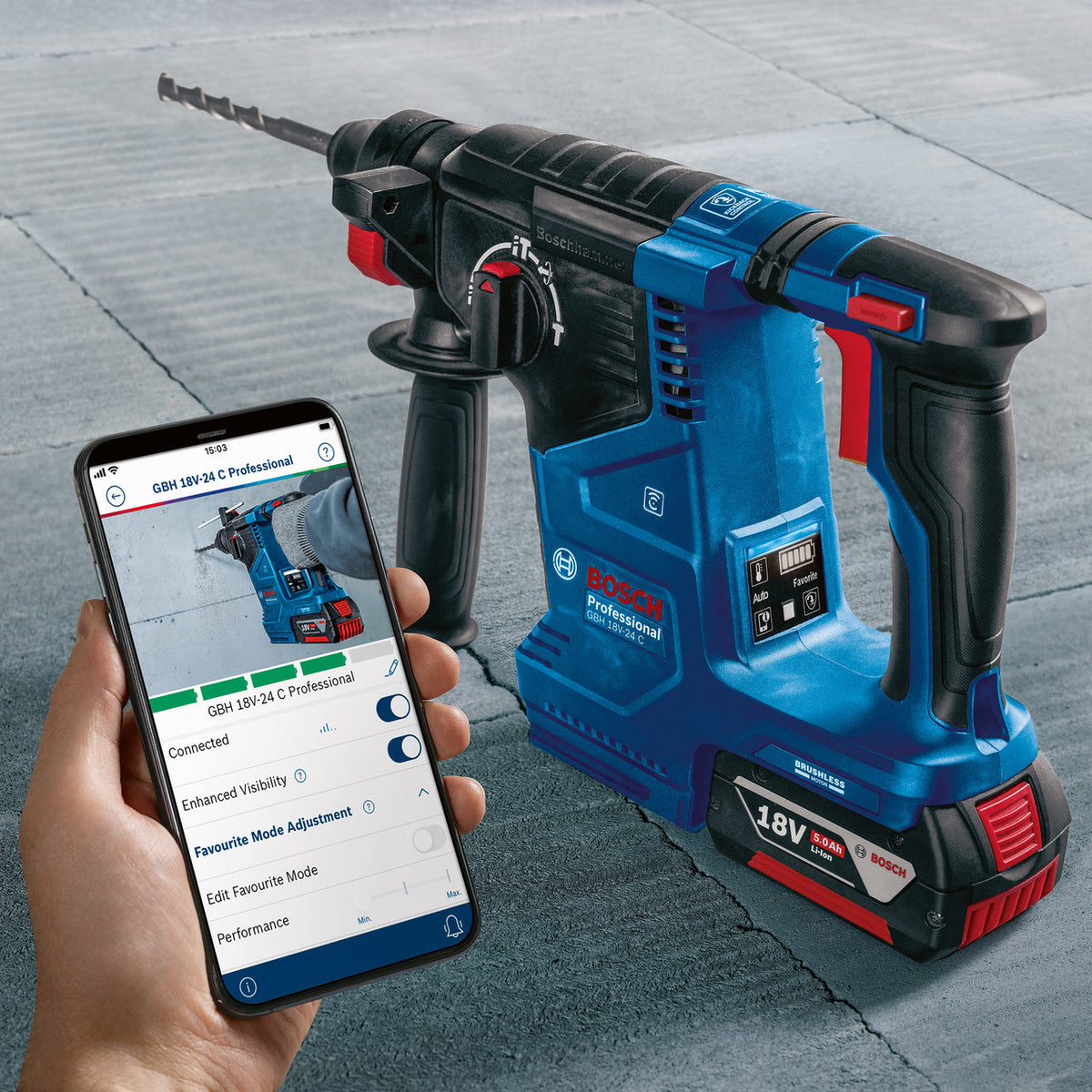 The Bosch GBH 18V-24 C is an efficient rotary hammer for everyday work with built-in Bluetooth Connectivity