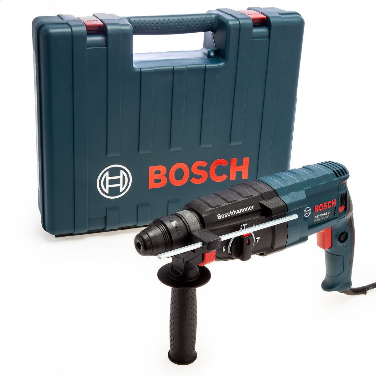 The Bosch GBH2-24D is a great all-round 2-kilo hammer. With a powerful 790 watt motor and the ability to drill 24mm holes in concrete, this is the perfect small hammer for site use