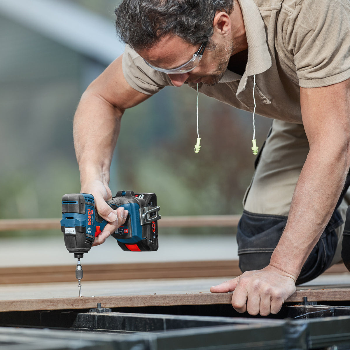 The GDR 18V-200 Professional Cordless Impact Driver offers an excellent power-to-size ratio with a ¼” bit holder. Boasting a body head length of only 126mm, this cordless impact driver is suitable for even tight spaces. The GDR 18V-200 is equipped with a brushless motor for a strong tightening torque of 200 Nm, excellent battery runtime and a long tool lifetime. For better control over speed and torque, this cordless impact driver features a variable speed trigger. The GDR 18V-200 Professional is intended for tightening and removing screws when working in metal sheet, metal and wood. Furthermore, this cordless impact driver is compatible with all Bosch Professional 18V batteries and chargers (Professional 18V System). It offers also Electronic Cell Protection (ECP), a LED light and a belt clip. Sold as a body-only machine in an L-Boxx without battery or charger.