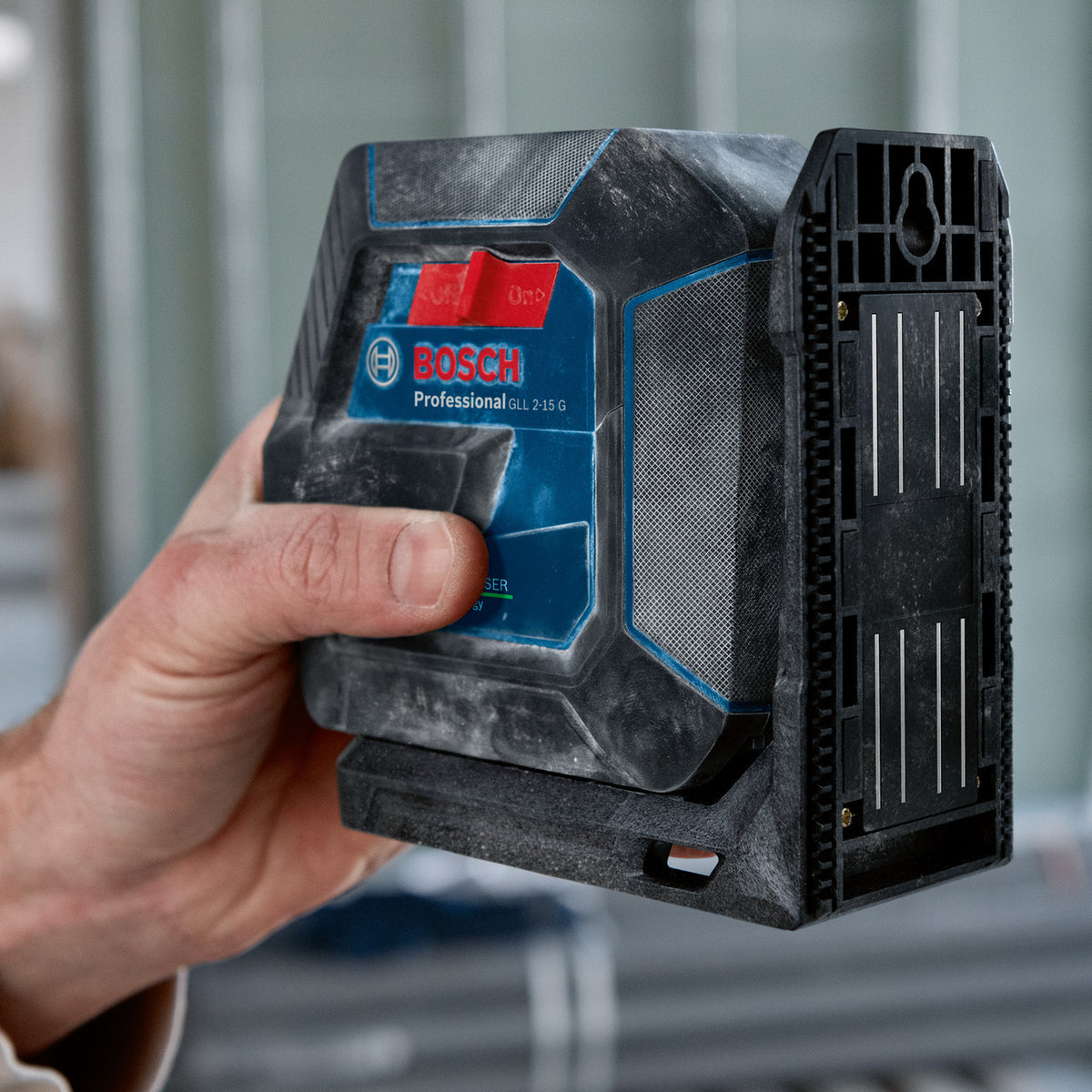 The GLL 2-15 G Professional provides a working range of up to 15 m and a self-levelling range of up to +/- 4° in less than 4 seconds
