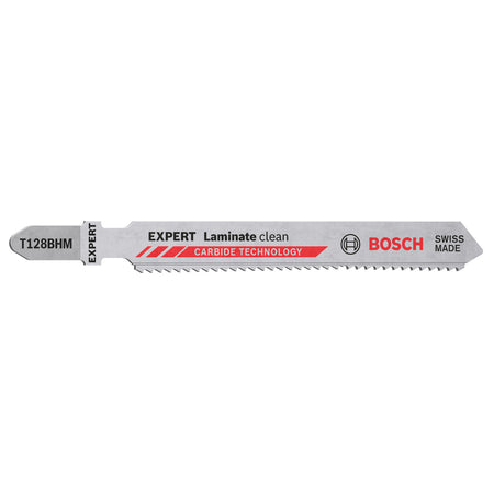 The Bosch T128BHM is a must have blade when installing laminate flooring or HPL cladding. If you want a clean cut from your jigsaw - but the material is so abrasive that normal blades get blunt quickly and no longer perform. The EXPERT ‘Laminate Clean’ combines the clean cutting of counter-directed teeth with Carbide Technology, to maintain great performance over a very long lifespan. The Bosch EXPERT ‘Laminate Clean’ Jigsaw Blade is a top performing blade for laminate work. Because of its very long lifespan, it is also a clear best choice for professionals who are fed up of wasting money on jigsaw blades that don’t last.