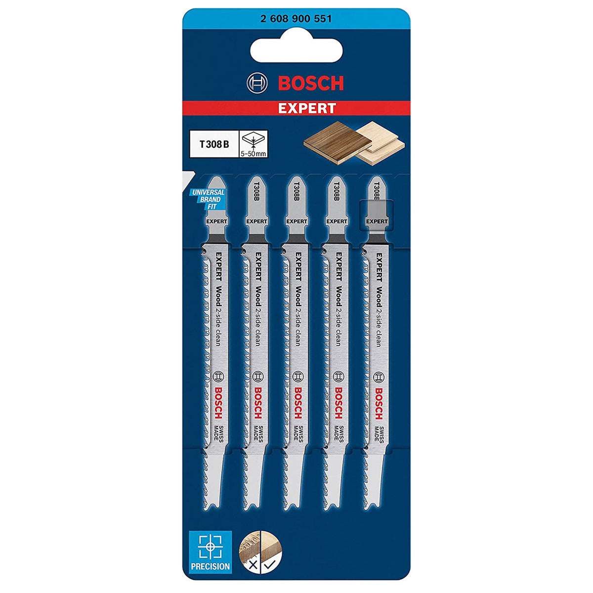 Bosch T308B Expert 'Wood 2-Side Clean' Jigsaw Blades (5 Pack)