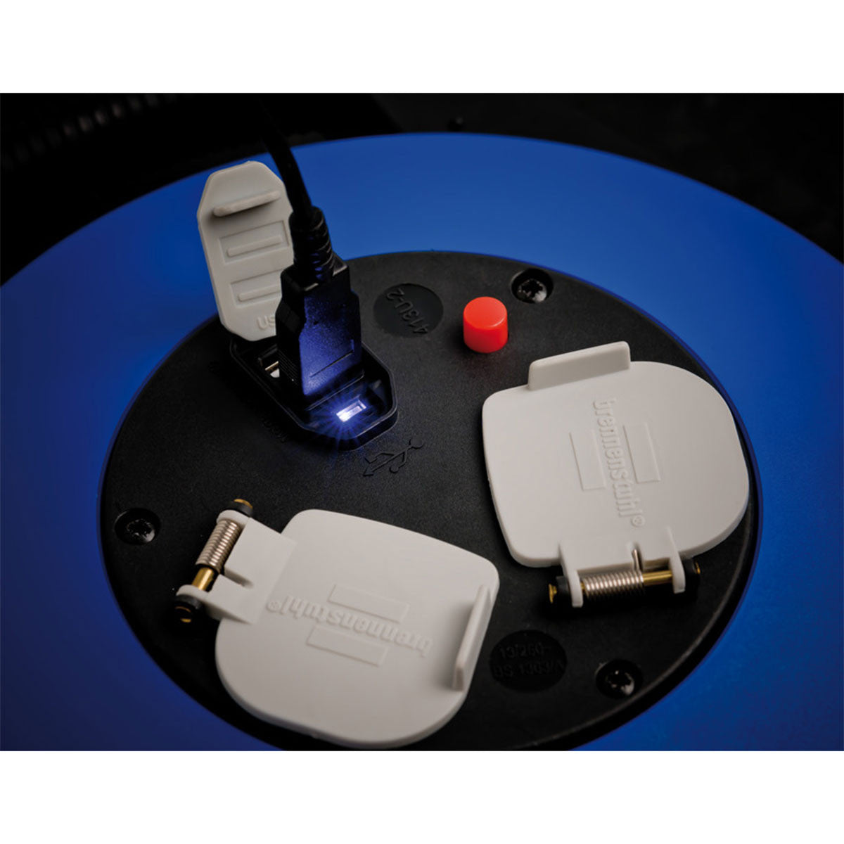 The Vario-Line cable box with USB charging function has an impact-resistant housing made of special plastic, an ergonomically shaped carrying handle and perfect stability due to the stable double base. It is designed for indoor use, is dust and dirt protected and has a total charging current max. 2100 mA for fast charging.