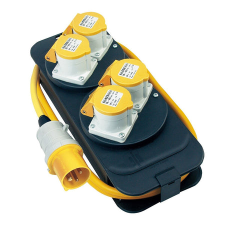 Energy Station CEE 4 socket 4 x 110V / 16A. A robust 4 socket power distributor for multi-purpose use. Casing made of break-resistant special plastic, with 2 holes on either side suitable for wall-mounting.