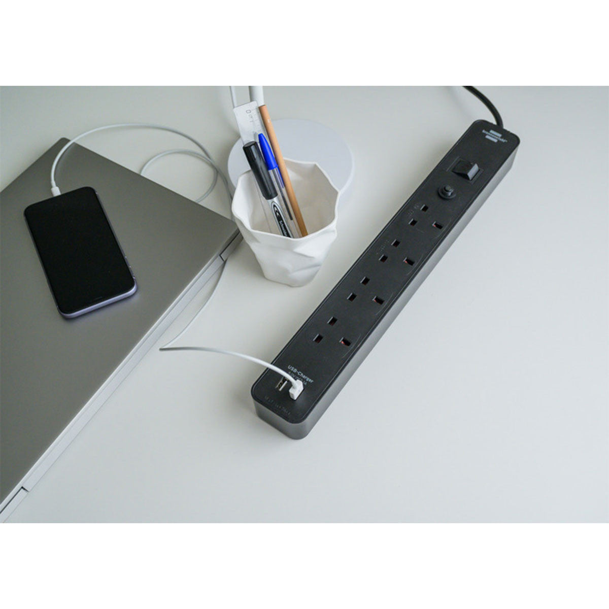 - 4-way grounded socket with 3m cable length (heavy duty 1.5mm² safety cable reducing the risk of overheating or overload) and integrated extra protection against contact