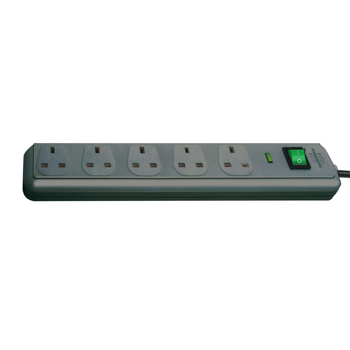 Brennenstuhl 1156753 Eco-Line 5-Way Extension Lead with Surge Protection Switch 2m (Light Grey)