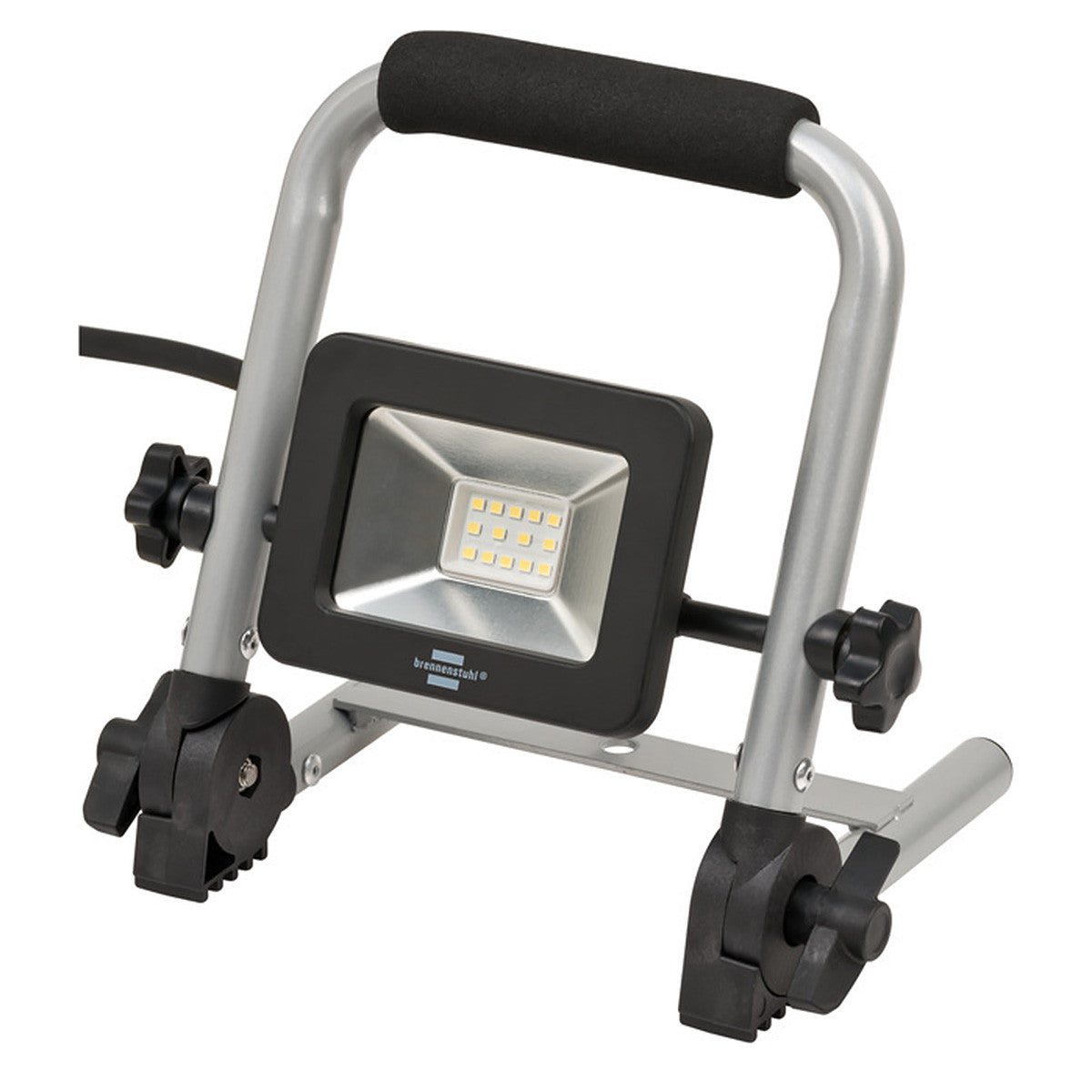 The foldable LED work light EL 753 M with 10 W power is suitable for use both indoors and outdoors thanks to the IP65 protection class (dustproof and jet-proof), for example for various DIY and craftsmen's work that takes place in or around the house. The portable construction light can be continuously swivelled and locked in place and can be stored and transported in a space-saving way thanks to its foldable frame. Not only the aluminium housing is extremely robust, but also the stable tubular steel frame and the locking screws. Suitable for mounting on Brennenstuhl tripods.