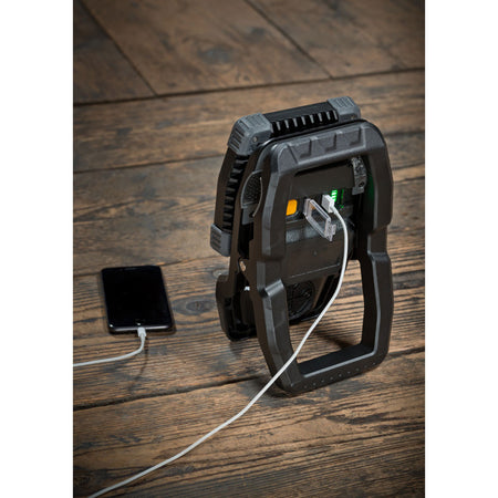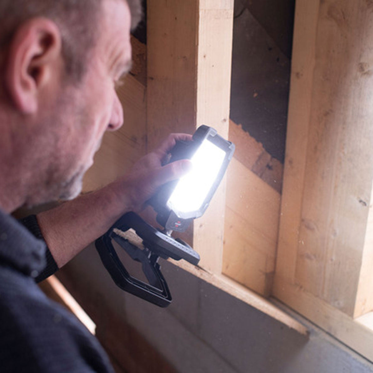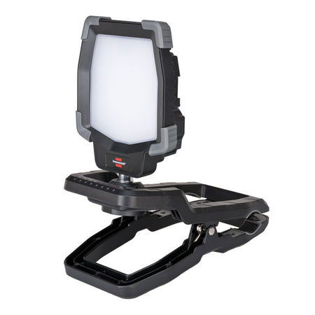 The Brennenstuhl 1173070020 rechargeable LED work light features a special clamping device that allows it to be attached to work surfaces, pipes, plates, etc. offering bright, glare-free light and free hands when working. Thanks to the ball bearing and the integrated ball joint, the inclination angle of the LED construction light can be flexibly adjusted by almost 360° and individually aligned in all directions. You can achieve a light duration of up to 12h. This model has an integrated rechargeable battery and even has a USB power bank included for charging the likes of mobiles.
