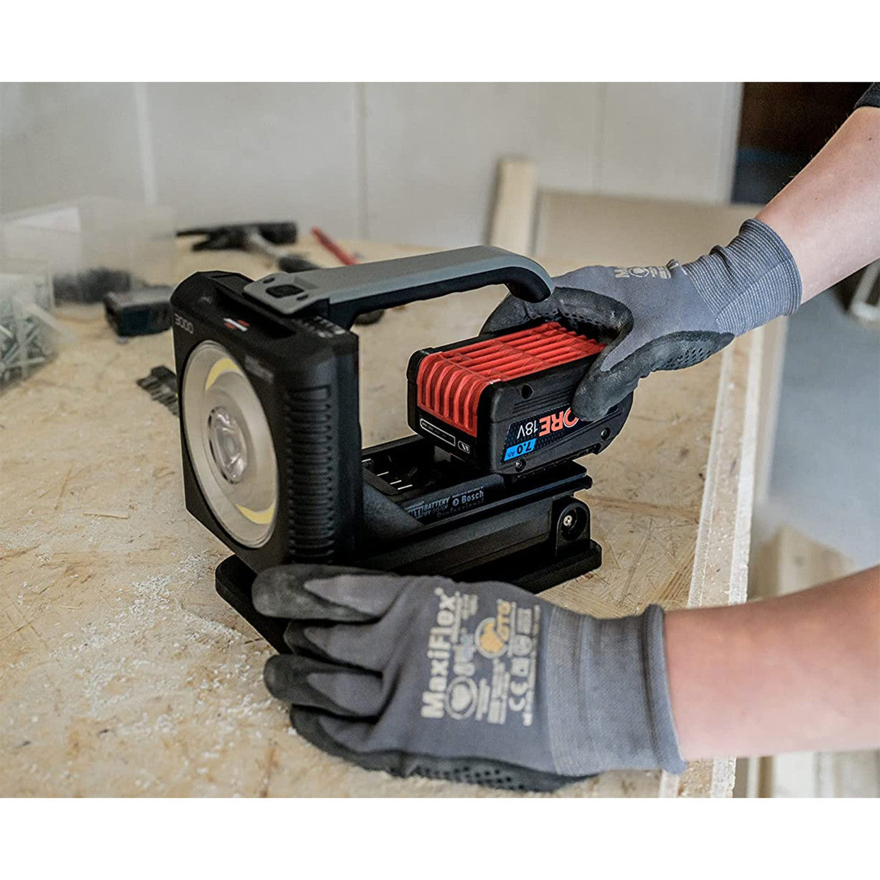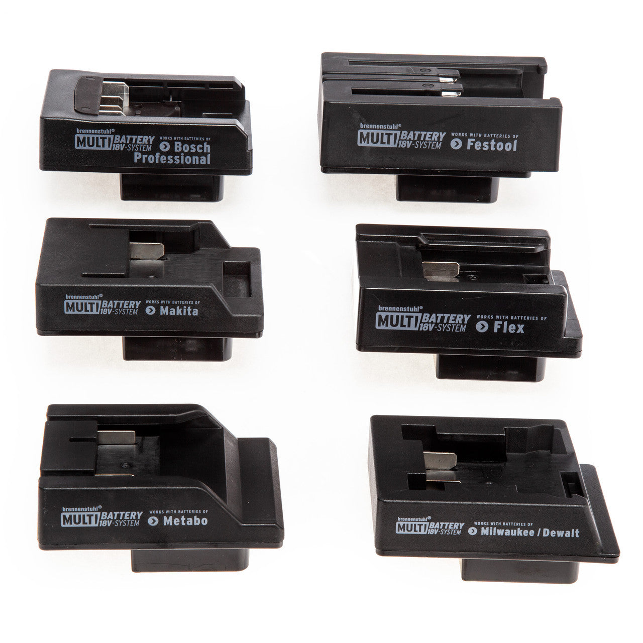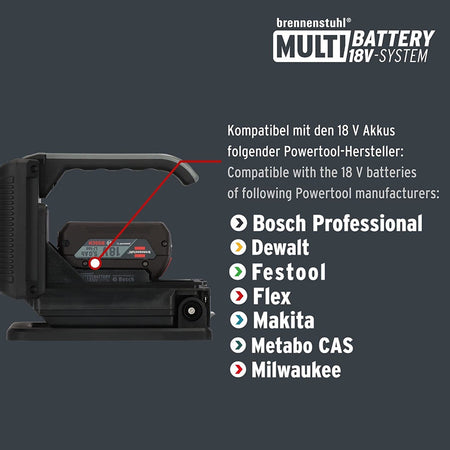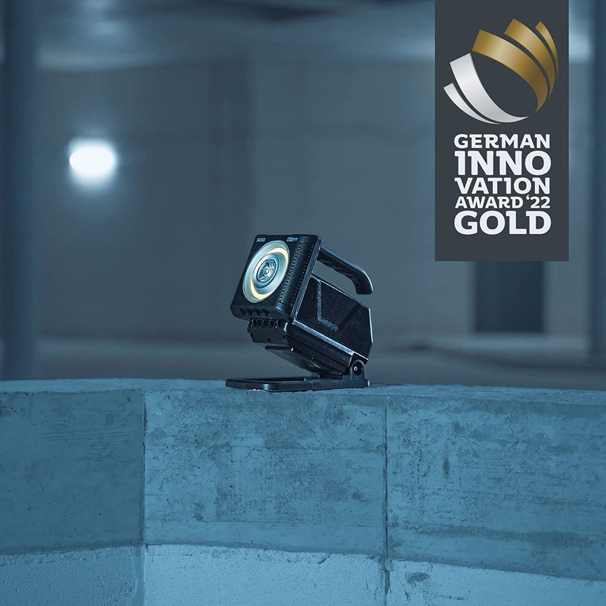 Thanks to the Brennenstuhl Multi Battery 18V System, the extremely robust and bright Multi Battery portable work light HL 3000 is compatible with different 18V batteries (different Ah classes) from the seven power tool manufacturers Bosch Professional, Dewalt, Festool, Flex, Makita, Metabo CAS and Milwaukee. So no matter which battery system is already in use, the interface technology enables maximum flexibility and it is possible to fall back on the battery system of one's choice. With just a flick of the wrist, the matching adapter (all included) can be inserted at the interface. The extremely robust yet lightweight work light is a true multi-talent thanks to two light sources. The SMD LED is perfectly suited as a concentrated spotlight, while the COB LED light ring provides ideal working light with various light levels. The portable searchlight also has a battery status indicator that shows the remaining energy of the batteries used (the batteries must be charged externally) and a protection system for Powertool batteries. This protects the batteries from deep discharge and overheating (caused by high load currents).