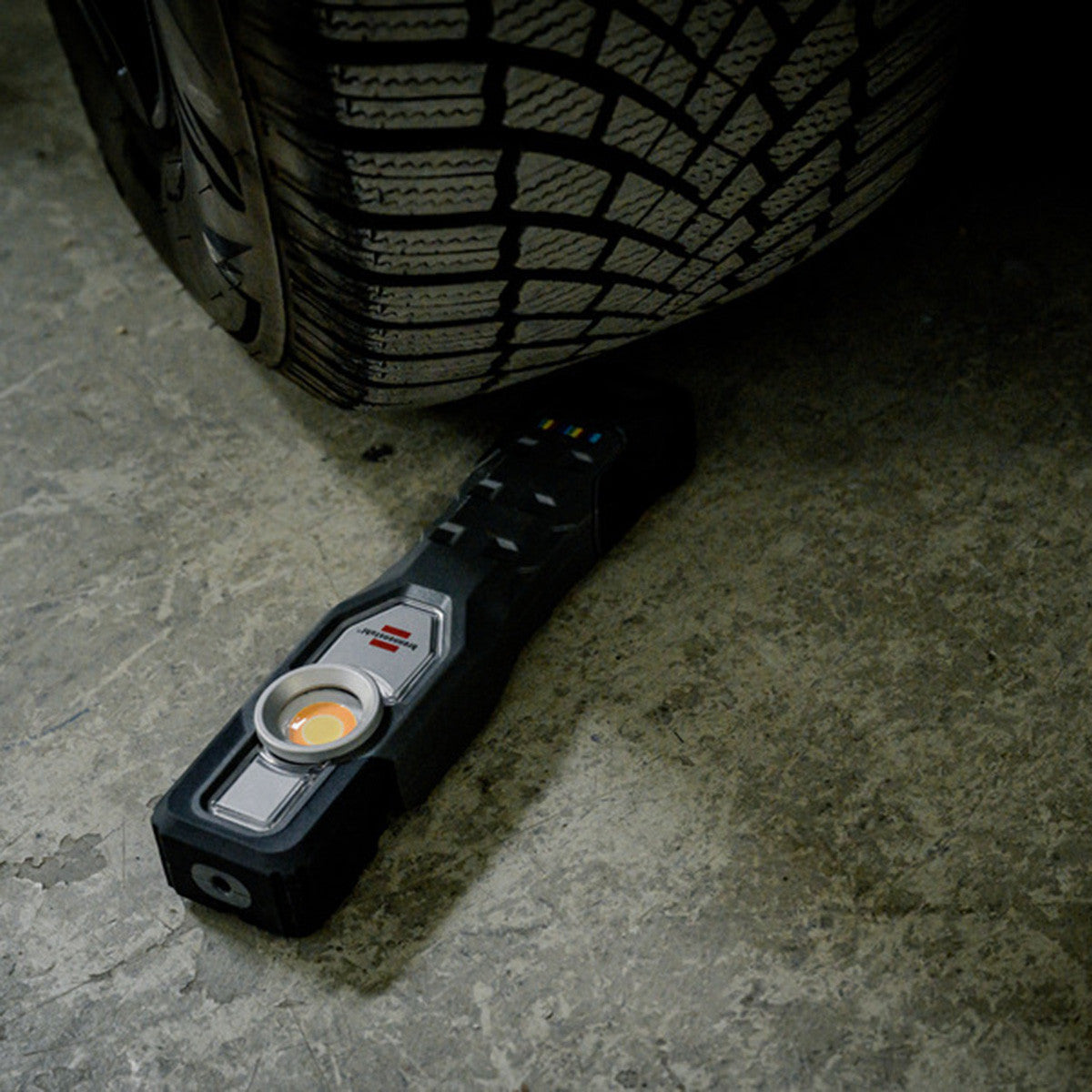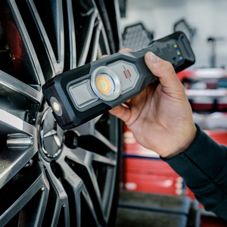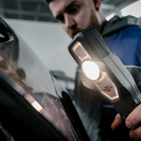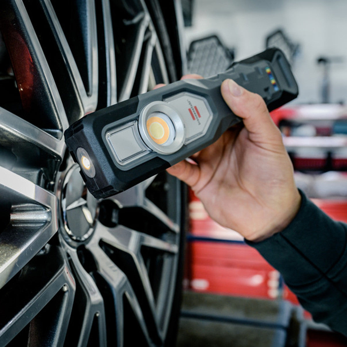 The HL 701 AT is an extremely bright and robust LED work light with IP54 protection (dust and splash-proof) is ideal for detailers, painters and varnishers, car workshops or car experts. The change between several color temperatures allows the preparation and assessment of the color quality on various surfaces, such as when matching colors. Thanks to the infinitely variable dimming function (10 to 100%), the LED Detaling lamp has a particularly long lighting duration of up to 24 hours. The hand lamp can be charged via the USB charging interface and with the help of the supplied USB charging cable.