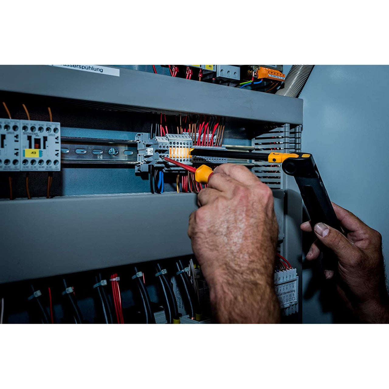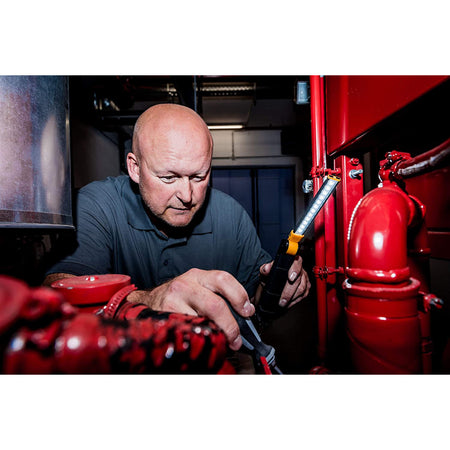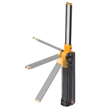 The Rechargeable LED Hand Lamp SANSA 400 A is an extremely slim LED work light with integrated Li-Ion battery 3.7 V /2.0 Ah and a charging indicator. Due to the rubberized surface, the LED workshop lamp offers an ideal grip. With the help of the integrated magnets and the fold-out hook, the LED inspection light can be used flexibly and ensures free hands. The light output is individually adjusted by the yellow "wheel" on the lamp body - this enables perfect dimming for every purpose.
