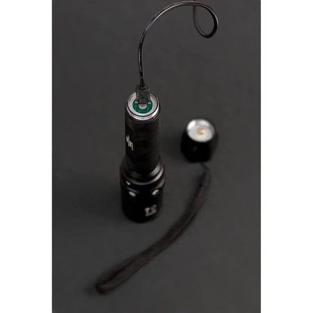 - Durable aluminum housing with wrist strap