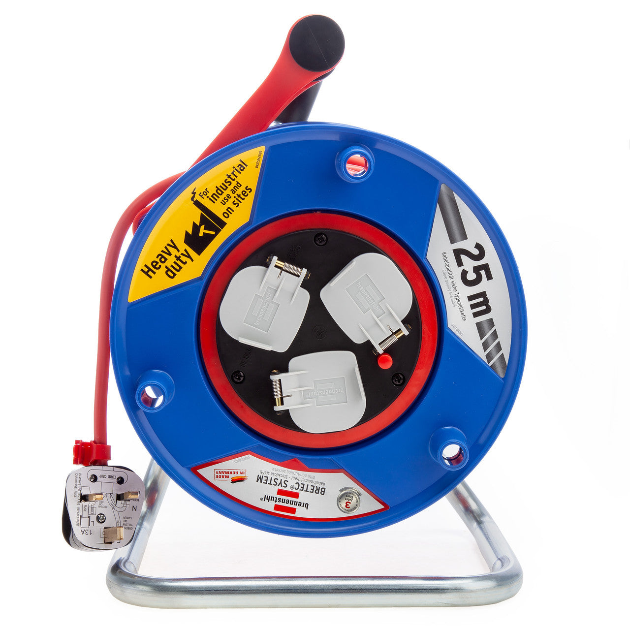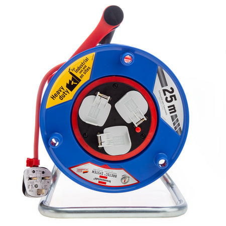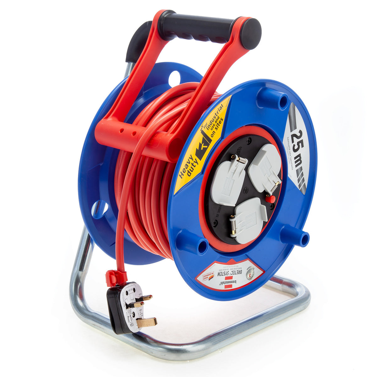 25 Metre Heavy Duty Cable Reel for industrial use and on sites. Garant Bretec cable reel 25m H05VV-F 3G1,5 /240V. With the unique Bretec Anti Cable Twist System for comfortable working.